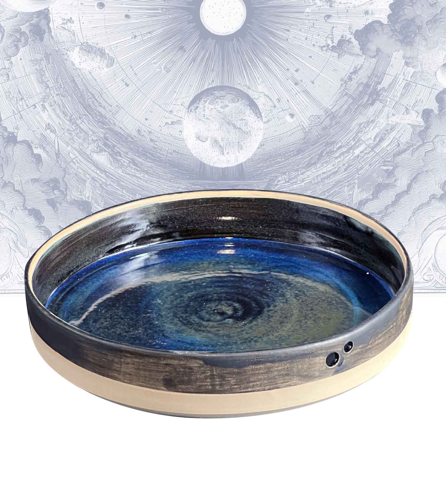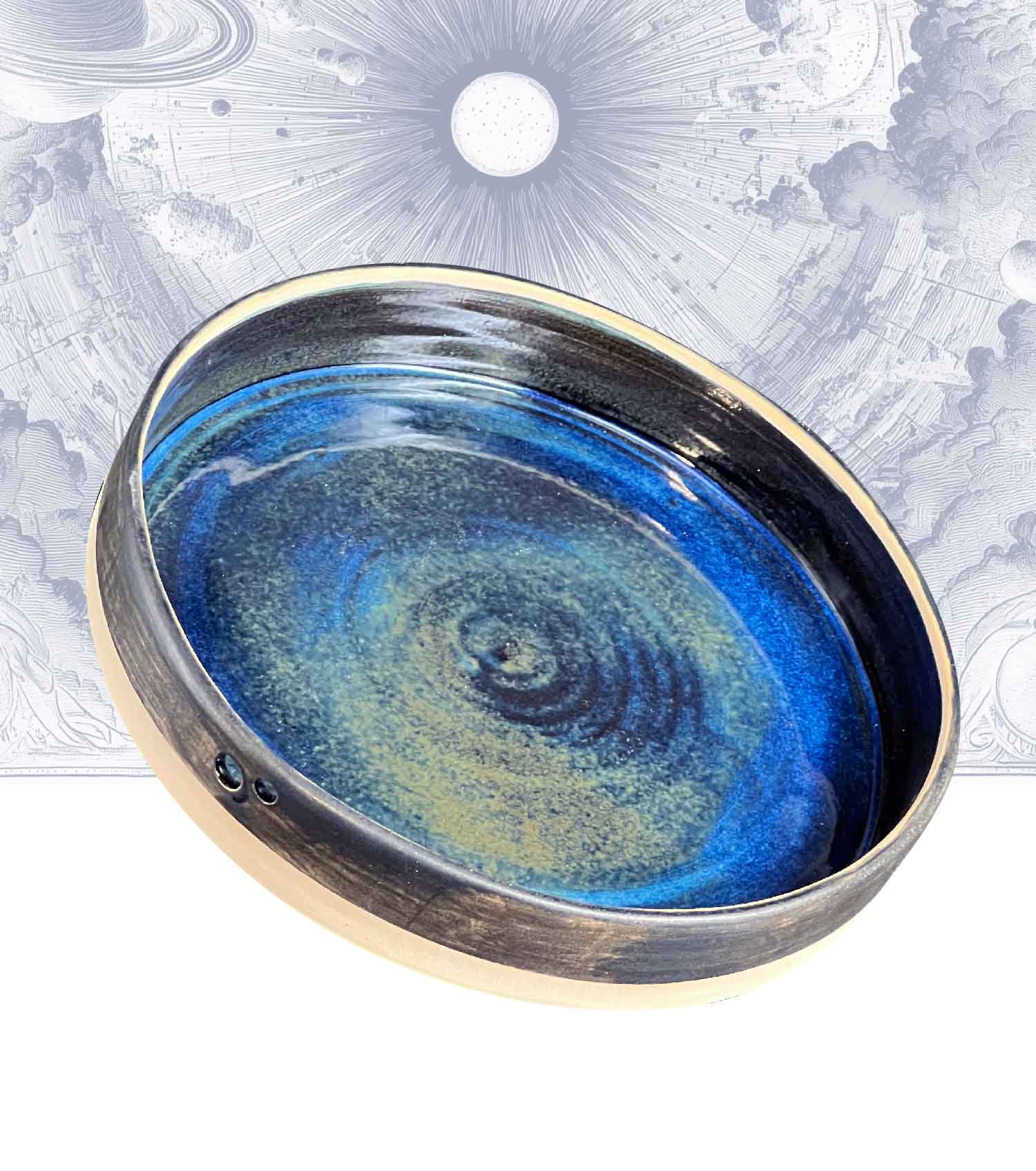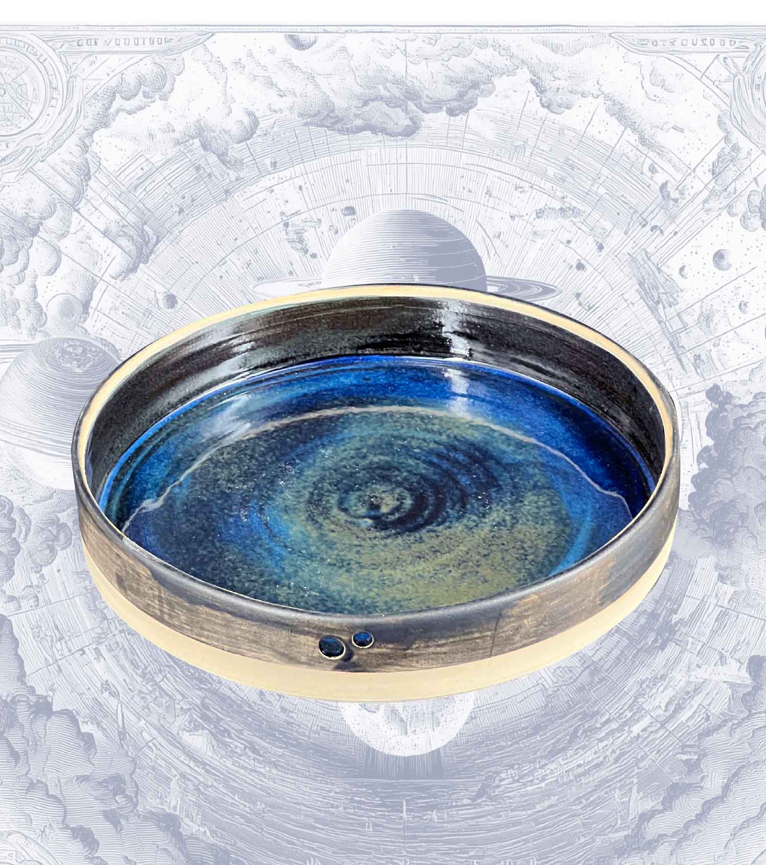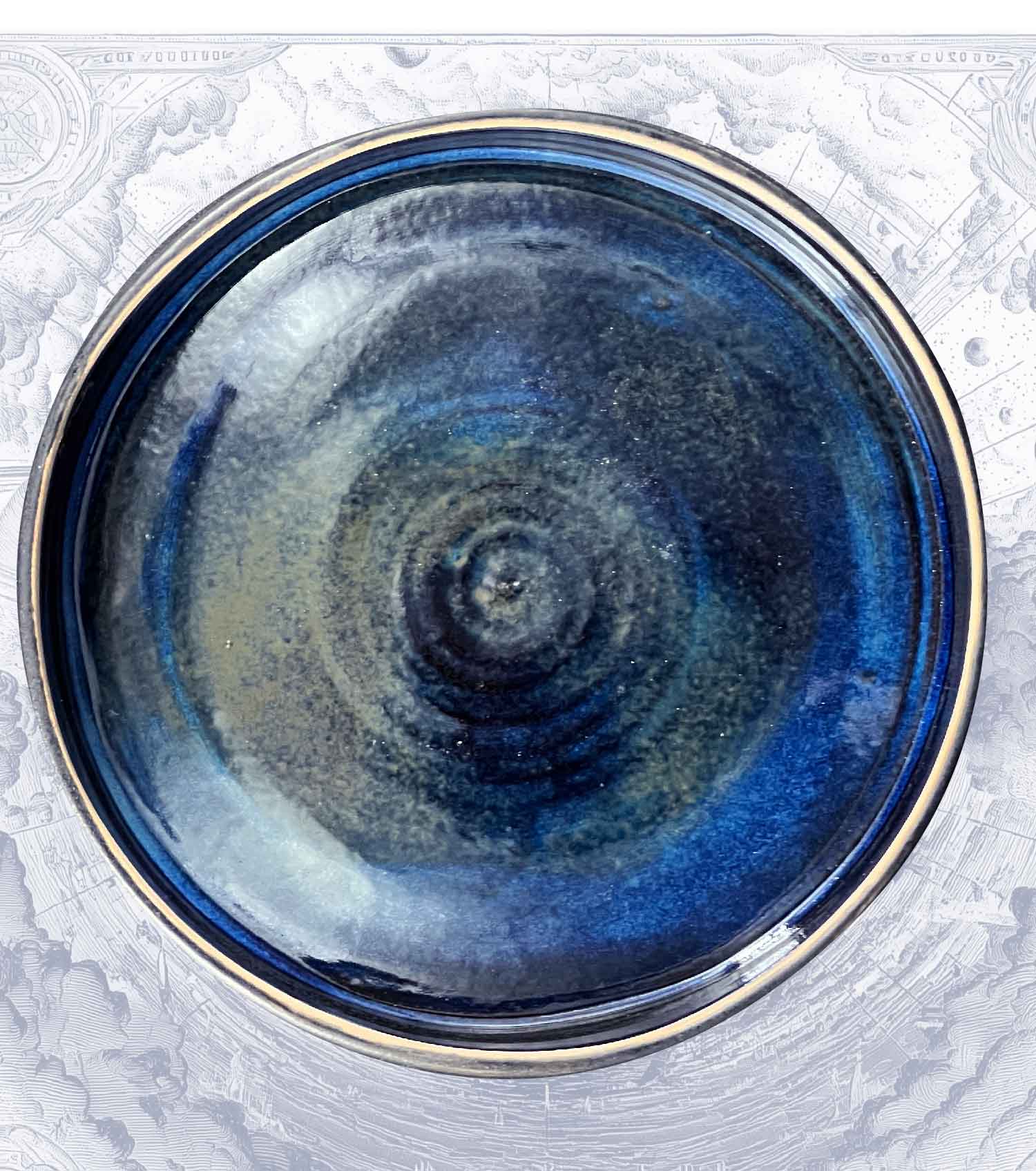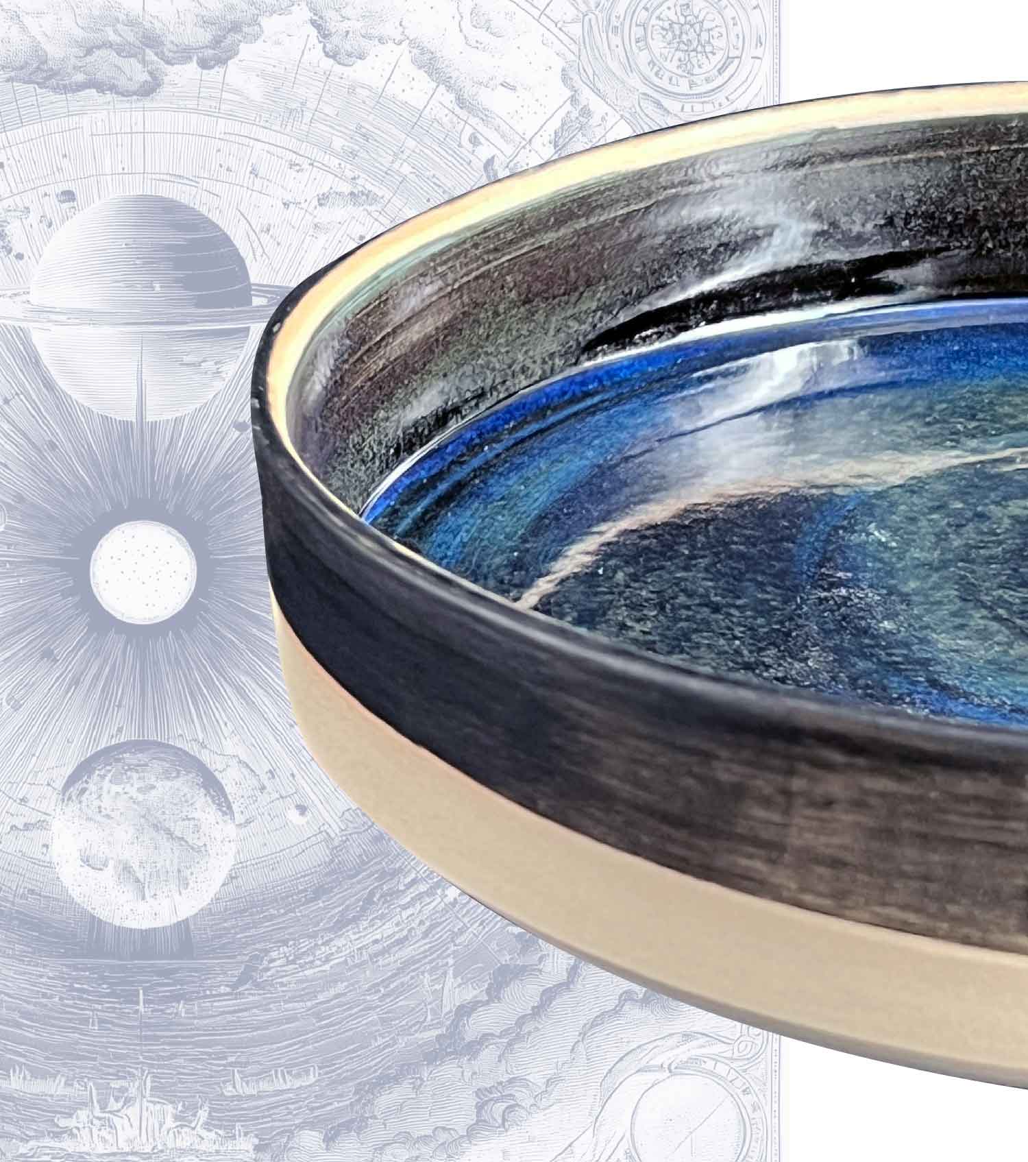 Email extérieur noir mat, intérieur nuances célestes de bleus et de noirs.