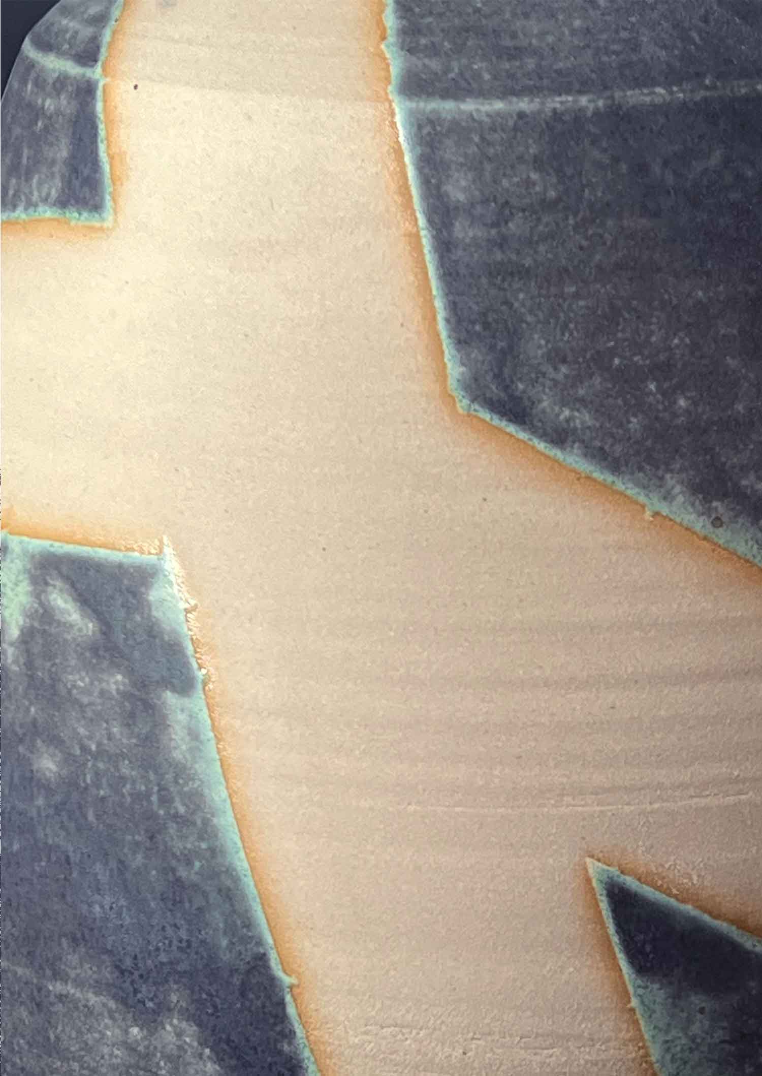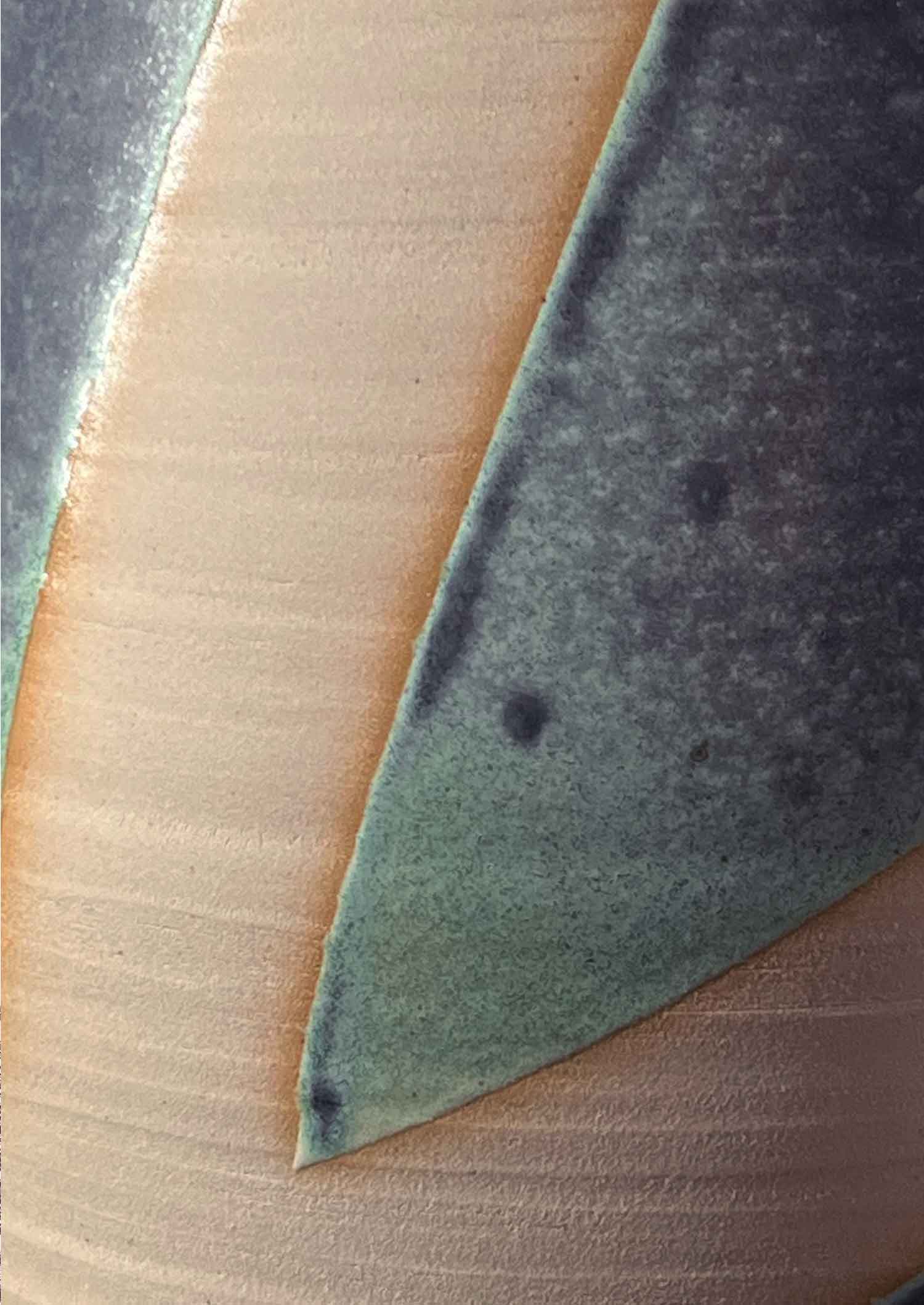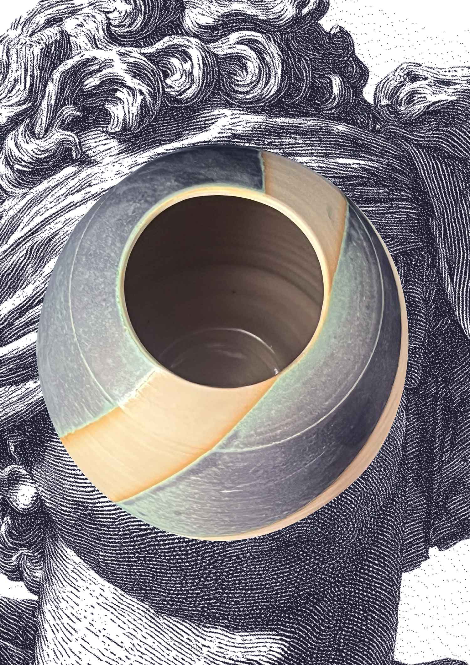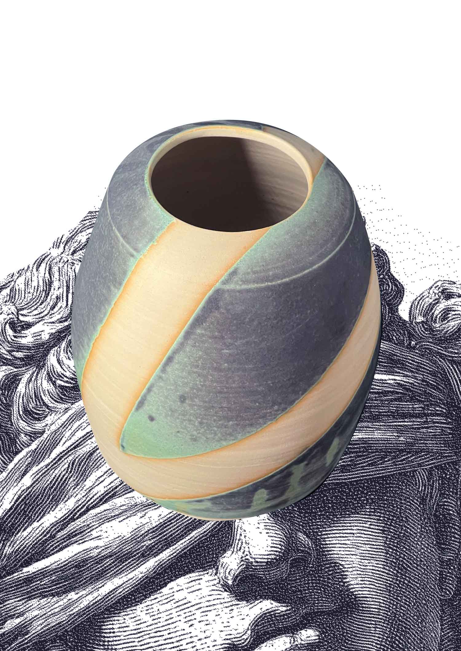 C’est un vase à la fois sculptural et méditatif, qui ne cherche pas à être parfait mais à être vrai : la terre respire, l’émail coule, le bandage relie.