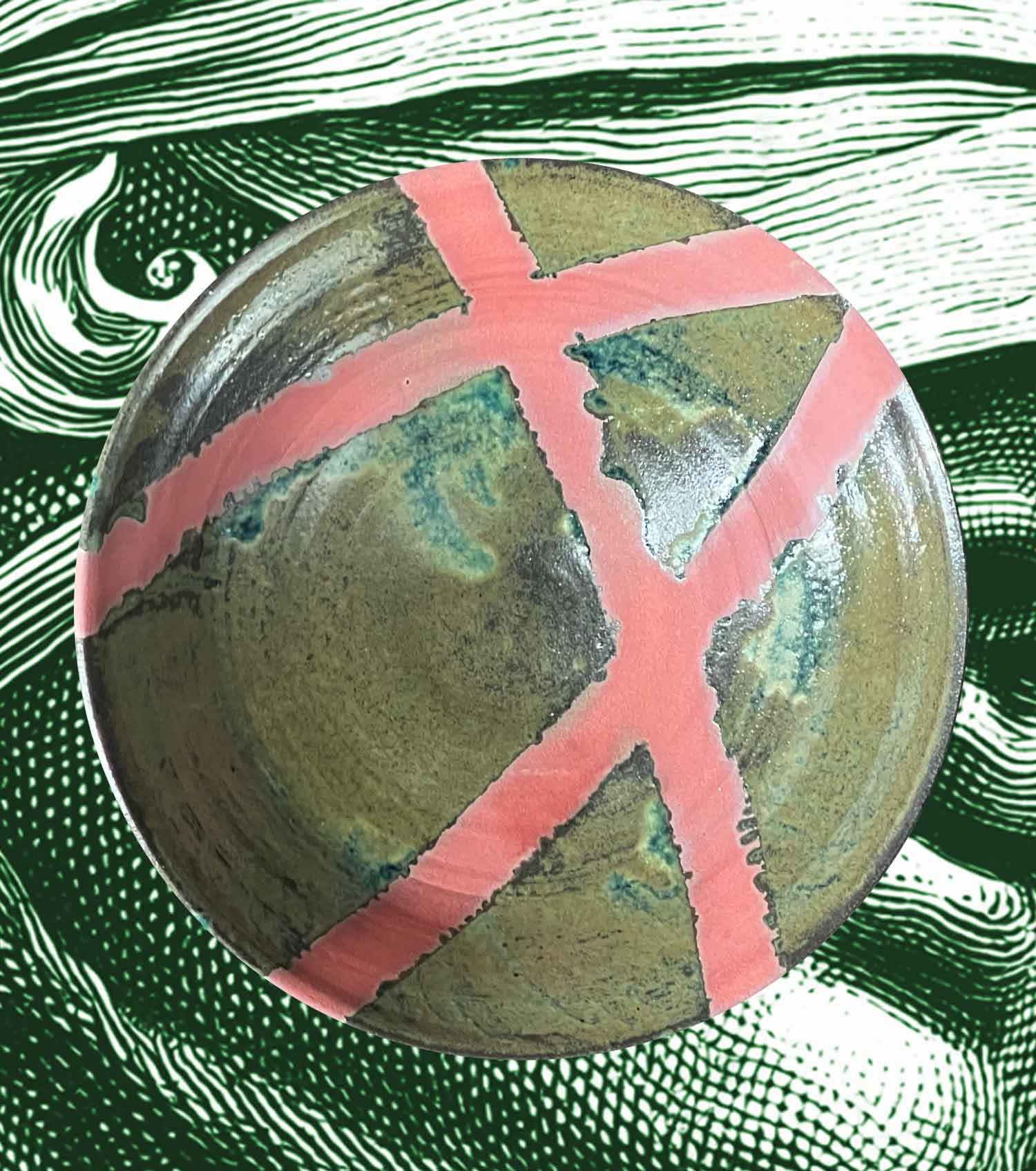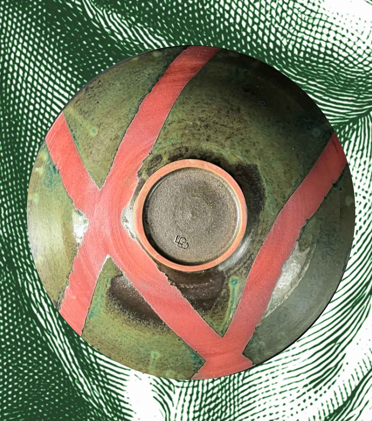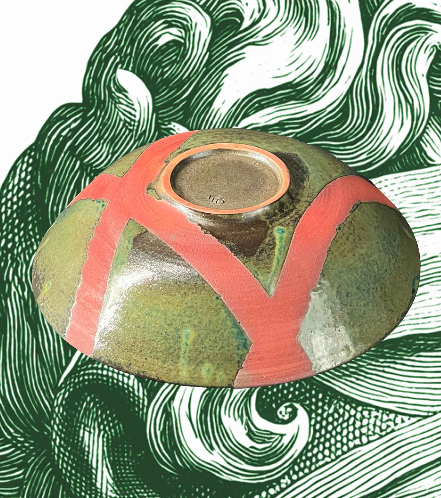 Issu de la même lignée de pièces “bandées”, ce saladier impose sa présence par ses proportions généreuses, un “bol plat” ample qui respire. Façonné en grès, des stries ou zones non émaillées laissent apparaître la terre brute, témoins du geste, de la matière à vif.