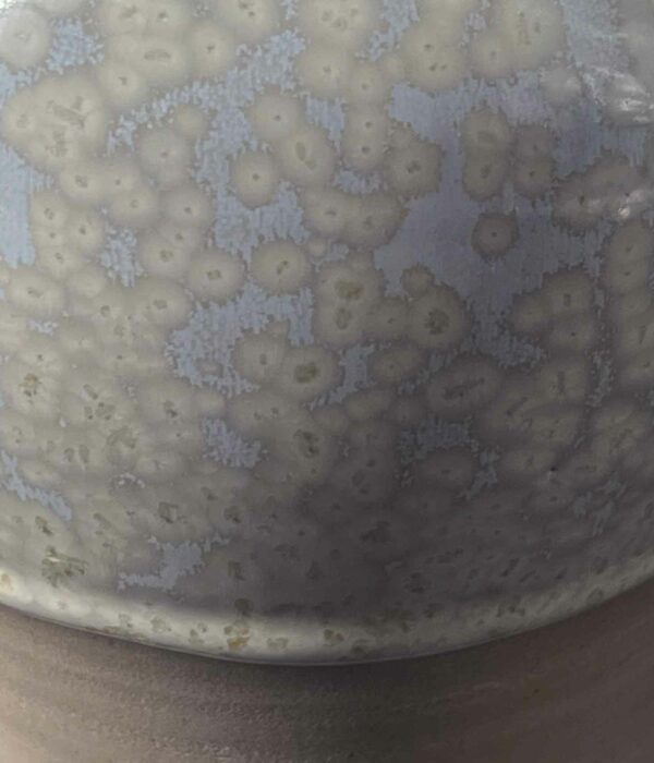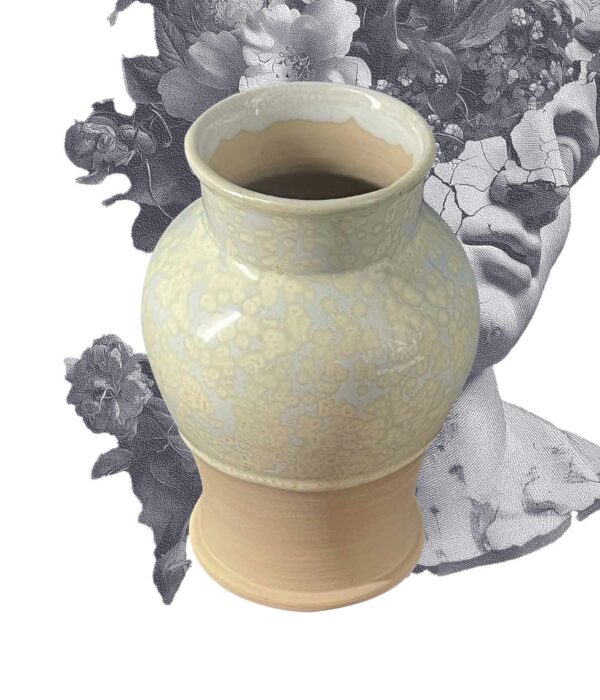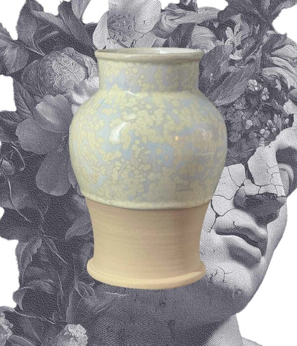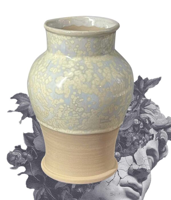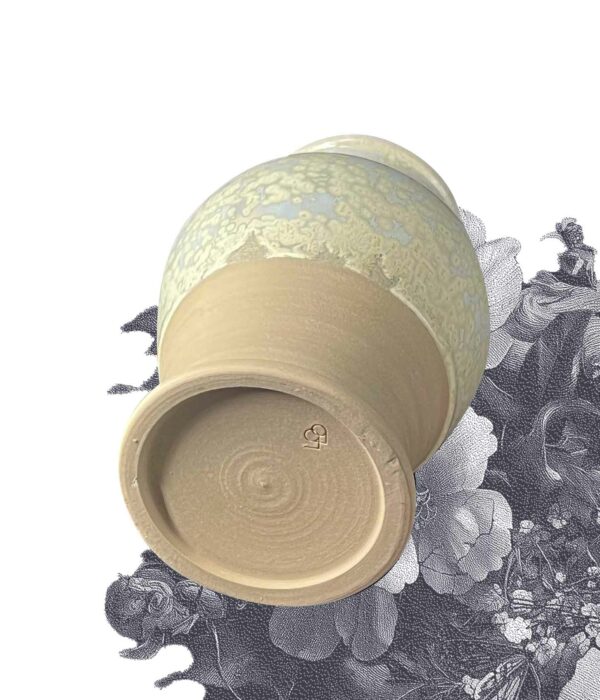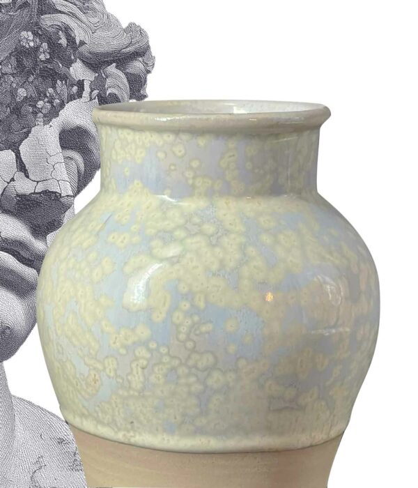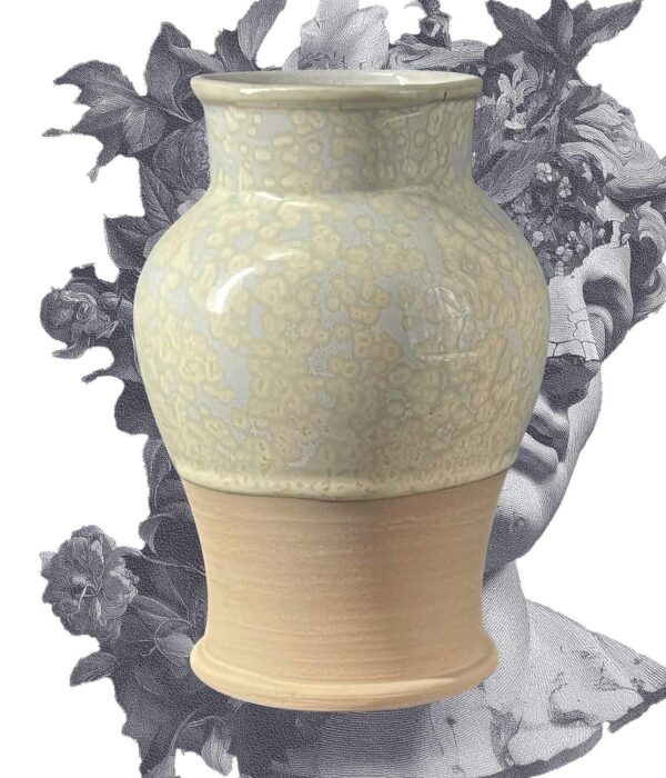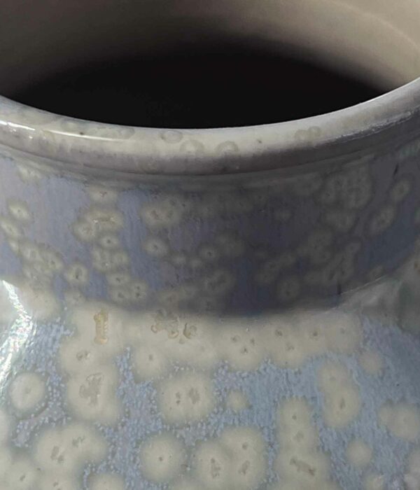 Ce vase balustre joue sur la tension entre la rondeur du corps et la finesse du col. Sa glaçure « Cristal » révèle des petites nucléations subtiles.